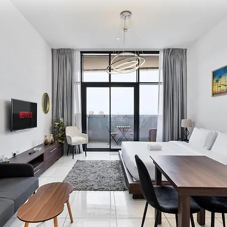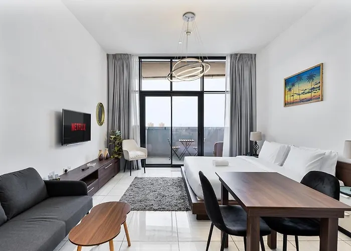 O Modern Studio With City Views Near Miracle Garden Dubai de 42 m² está localizado em Dubai a uma distância de 7 km de Clube de Golfe Emirates e disponibiliza aos hóspedes piscina ao ar livre e centro de fitness. Fica a cerca de 10 minutos andando do Autódromo de Dubai, enquanto Business Bay Metro está a cerca de 30 minutos de distância do carro.